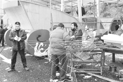 图为小雄镇彩车制作现场。 (陈维连 摄)