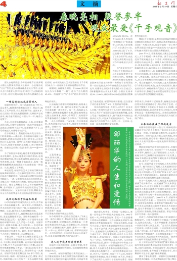 如今,邰丽华成了中国残疾人艺术团里的台柱子。她不仅担任了残疾人艺术团演员队队长,出任了中国特殊艺术协会的副主席,同时她也是中国残疾人艺术团的“形象大使”,先后在40多个国家巡回演出,她的演出剧照总是出现在艺术团宣传材料最醒目的位置。