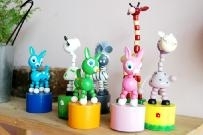 可爱的小动物们也跑来这里落户了。五彩斑斓的颜色,按一下底座就会扭动的关节让我们想起了童年时光。