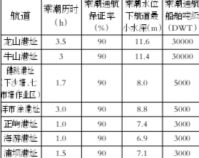 根据各港址航道水深条件,进港航速按8节考虑,选取2005年健跳全年实测潮位,按乘潮累积频率统计,取乘潮累积频率90%。由乘潮累积频率曲线计算查得相应的乘潮水位与相适应的通航船舶。