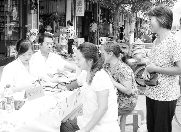 为迎接建国60周年,花桥镇团委组织镇内青年志愿者为当地百姓提供免费服务,服务内容包括医疗卫生、法律咨询、创业就业咨询和理发等。 图为志愿者正在为老人理发。(柯晶贞)