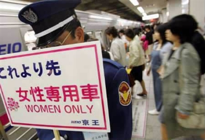 日本的女性在乘坐地铁期间,受到性骚扰的案件时有发生。为减少这种情况,东京地铁公司从2005年5月9日开始,开通了10列设有女性专用车厢的列车。日本的女性乘客对于这一新举措普遍表示欢迎,乘坐女性专列使她们感到更为放松,更加安全。据悉,这10列女性专列包括9列城铁和1列地铁,时间仅限于早晚上下班的高峰时间。