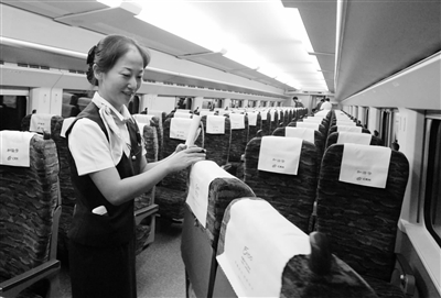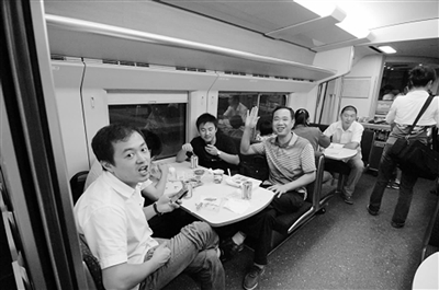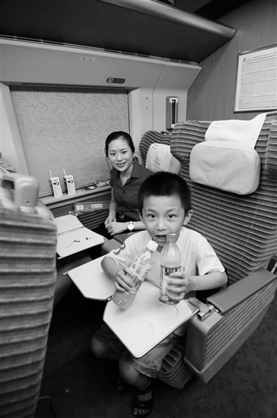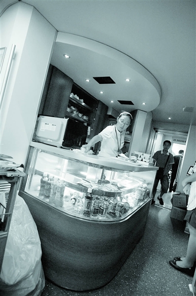 动车组里面还有一个小小的吧台,为乘客提供饮食服务。