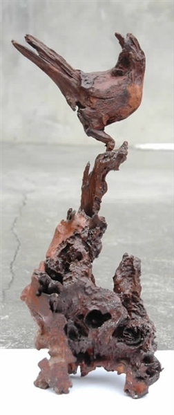 王瑞人雕刻根雕作品《喜鹊》庆祝铁路通车