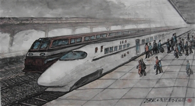 徐劲松书现代散文诗《火车划破了闪电》庆祝火车开通