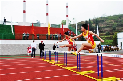 由县教育局、县体育局举办的2012年县中小学生田径运动会于4月12日至14日在三门中学体育场举行。来自县直属学校、各乡镇中小学校,共474名运动员参赛。比赛分高中、初中、小学等组别进行。比赛项目有跳高、跳远、跑步、铅球、铁饼、标枪、男女五项全能等。图为高中女子组100米跨栏比赛。