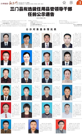 网上公示:三门党建(http://www.smdj.gov.cn)