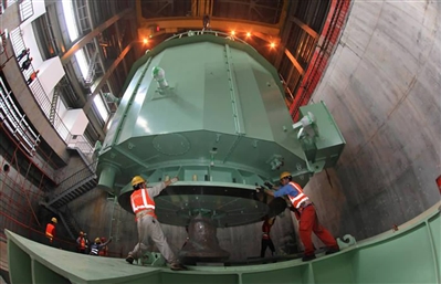 日前,三门核电站1号机组的两台循环水泵电机顺利吊装就位,总重高达150.5吨,这标志着循环水泵主要部件均已吊装就位,为顺利完成整个循环水泵安装打下坚实基础。 本报记者 陈佳 通讯员 侯邦军 摄