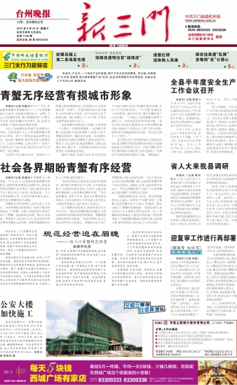 新三门 一版要闻 01 2012-08-251 2012年08月25日 星期六