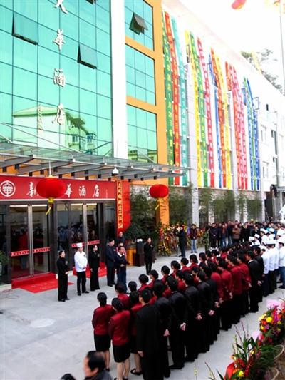 新大华酒店营业已有23年历史,是目前三门最具规模的纯餐饮老店,座落于县城人民路162号。酒店装修别致、环境幽雅、停车场地宽敞。酒店以本地海鲜为主,江浙菜为辅,特聘名厨推出以燕、鲍、翅及新派粤菜品,是宴请、聚餐的理想场所。酒店被评选为省“消费者信得过单位”、“食品卫生A级单位”、“文明经营户”、“诚信工商户”,市、县“食品卫生先进单位”,县“卫生质量信得过单位”等荣誉称号。2011年,“海鲜青蟹宴”、“鸳鸯麦饼”被台州市人民政府评为“台州名宴名点”等美誉。 2012年,酒店着力对菜肴进行了翻新,对服务规范有了加强,环境进行了改善,以全新的形象和优质的产品为广大顾客提供更好的服务。