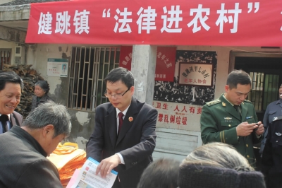 为进一步宣传健跳检察室职能,提高检察室在基层人民群众中的知名度和影响力,4月25日上午,健跳检察室联合健跳司法所、健跳边防派出所一起来到健跳镇上七市村,共同开展送法进乡村活动。