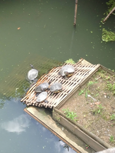 近日天气闷热,人都有点扛不住,就连动物也纷纷找出路避暑。瞧,家住氵里浦镇古松村的舅舅家养的这几只乘凉了,可不仅仅是露脑袋这么简单,而是爬上了岸边的竹排上“乘凉”。网友世界那么大 摄