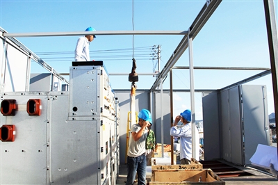 为支持台州第二电厂建设,县供电公司积极做好相关配套服务。图为9月8日上午,该公司变电运检中心16人组成的施工小分队,正在氵里浦镇草头村加紧建设35千伏临时变电所。陈玲玲 程亚军 摄
