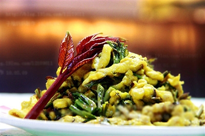 在众多的野菜中,香椿是被很多人爱、也被很多人讨厌的一种野菜。因为它有一股特殊的气味,就像香菜,有人爱也有人不爱。而用鸡蛋可以稀释香椿的气味,“香椿炒蛋”就成了一道名菜。