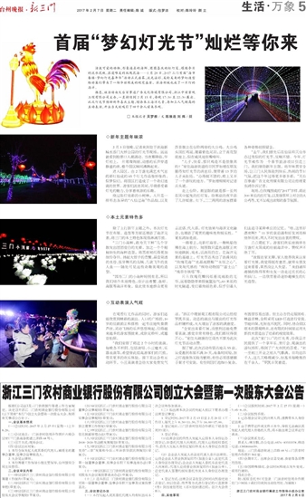 浙江三门农村商业银行股份有限公司创立大会暨第一次股东大会公告