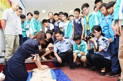 暑期将至,为进一步提高学生防溺水的安全意识和自救本领,日前,亭旁派出所联合县教育局、亭旁镇卫生院在亭旁中学开展“防溺水安全防范教育进校园”主题活动,教师、家长、学生、河道巡查员等300余人参加。图为医生指导大家学习心肺复苏施救方法。