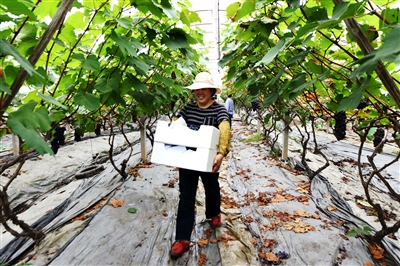 眼下正是葡萄采摘季节,县下洋潭果蔬专业合作社的葡萄园里,一串串硕大晶莹的葡萄挂满了葡萄架。据悉,该园共有328亩葡萄,亩产量约1500公斤,每公斤价格10元到20元不等。这些葡萄经过精心包装后,将销往上海、江苏、杭州等地。