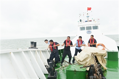 自进入禁渔期以来,县公安局治安大队食药环中队联合海洋渔业执法部门开展海上常态化巡逻,确保海上渔业生态健康发展。图为7月15日下午,执法人员在海上巡逻时发现非法捕鱼工具地笼网并对网具进行收缴。