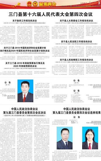 会议认为,过去一年多来,县委、县政府团结带领全县人民,深入践行新发展理念,不忘初心、牢记使命,知重负重、砥砺前行,以奋进姿态、奋斗精神书写了高质量发展的三门篇章。工业强县持续发力,多项经济指标进位明显,经济社会发展跃上了新台阶,提振了三门发展信心,成绩来之不易,经验弥足珍贵。特别是今年新冠肺炎疫情发生后,县委、县政府坚强领导、科学防治、精准施策,夺取了疫情防控的阶段性胜利。会议认为,李昌明县长所作的政府工作报告,总结工作客观全面、实事求是,部署任务思路清晰、措施有力,2020年政府工作安排,坚持稳中求进工作总基调,聚焦聚力高质量,提升发展竞争力,推动县域治理现代化,思路清晰、目标明确、措施有力、催人奋进,充分体现了全县人民的根本利益和共同心愿。委员们围绕本地民营企业发展、农村人居环境整治、教育改革深化、文化产业提升等议题,进行广泛深入的协商讨论,提出了许多富有建设性的意见和建议。