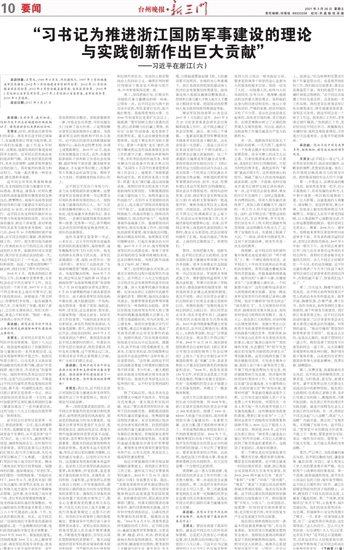 “习书记为推进浙江国防军事建设的理论与实践创新作出巨大贡献”