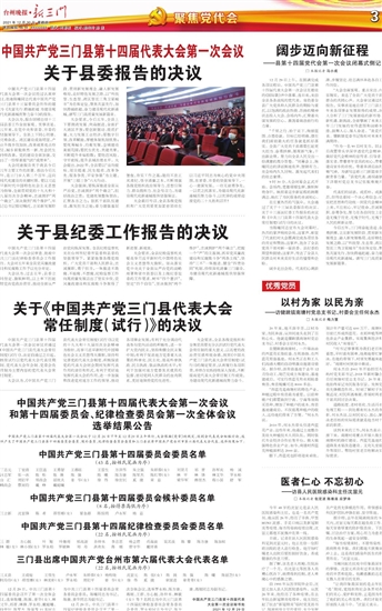中国共产党三门县第十四届代表大会第一次会议经过认真审议,批准陈曦同志代表中国共产党三门县第十三届委员会所作的题为《共富先行 跨越赶超 为建设现代化新港城而努力奋斗》的报告。