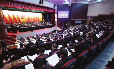 蔡周钧受三门县第十六届人大常委会委托,作工作报告。他说,过去的五年,是三门经济社会发展留下坚实足迹的五年,是我县民主法治建设扎实推进的五年,也是人大工作不断创新发展的五年。