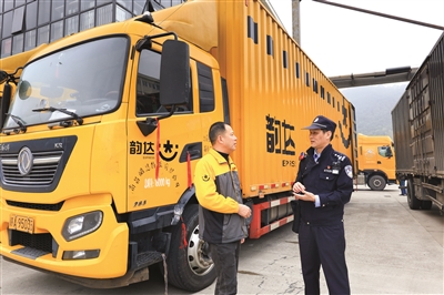 “双十一”过后,物流寄递进入高峰期,珠岙派出所责任区民警深入物流寄递公司开展安全管理检查,确保各项措施落实到位。图为近日,民警在韵达物流公司分驳中心提醒司机注意休息,确保安全驾驶。