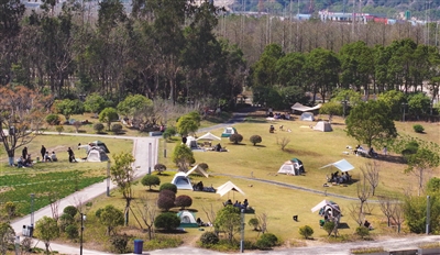 微风不燥,春意正好,露营成为市民踏青游玩的热门选择。图为日前,在海润街道海滨公园,市民们支起帐篷,亲近自然、融入风景,尽情享受着春日露营带来的惬意与欢乐。林利军 摄